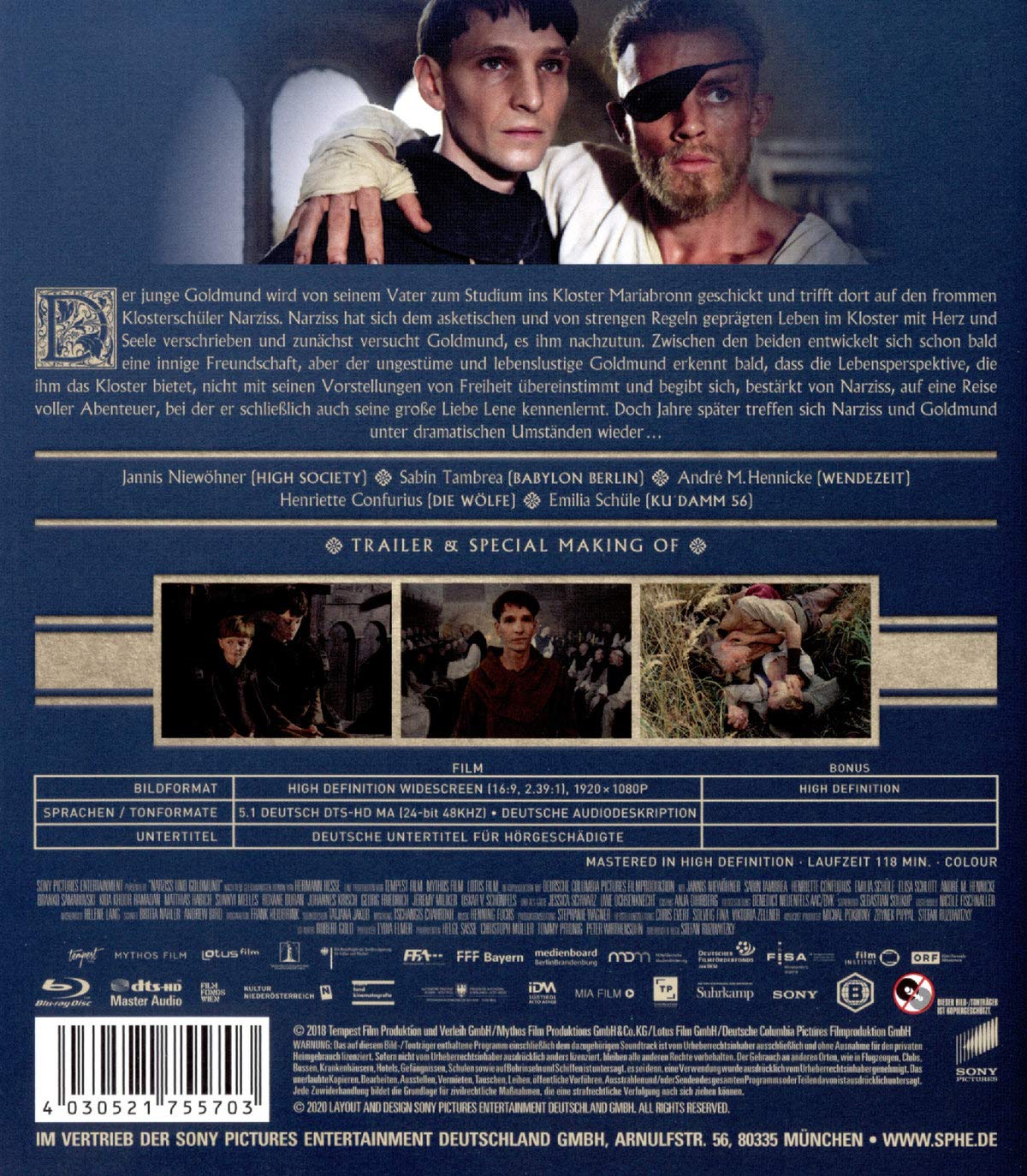 Der junge Goldmund wird von seinem Vater zum Studium ins Kloster Mariabronn geschickt und trifft dort auf den frommen Klosterschüler Narziss. Narziss hat sich dem asketischen und von strengen Regeln geprägten Leben im Kloster mit Herz und Seele verschrieben und zunächst versucht Goldmund, es ihm nachzutun. Zwischen den beiden entwickelt sich schon bald eine innige Freundschaft, aber der ungestüme und lebenslustige Goldmund erkennt bald, dass die Lebensperspektive, die ihm das Kloster bietet, nicht mit seinen Vorstellungen von Freiheit übereinstimmt und begibt sich, bestärkt von Narziss, auf eine Reise voller Abenteuer, bei der er schliesslich auch seine grosse Liebe Lene kennenlernt. Doch Jahre später treffen sich Narziss und Goldmund unter dramatischen Umständen wieder...