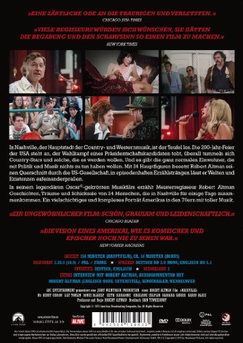 In seinem legendären Oscar gekrönten Musikfilm erzählt Meisterregisseur Robert Altman Geschichten, Träume und Schicksale von 24 Menschen die in Nashville für einige Tage zusammenkommen. Ein vielschichtiges und komplexes Porträt Amerikas in den 70ern mit toller Musik.
