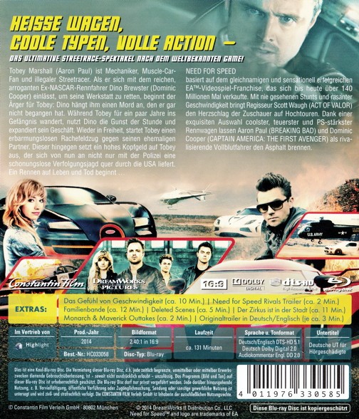 Tobey Marshall (Aaron Paul) ist Mechaniker, grösster Muscle-Car-Fan und illegaler Street-Racer. Als er sich mit dem reichen, arroganten Ex-NASCAR-Rennfahrer Dino Brewster (Dominic Cooper) zusammentut, um seine Werkstatt zu retten, beginnt der Ärger für Tobey. Dino hängt ihm einen Mord an, den er gar nicht begangen hat. Während Tobey für ein paar Jahre ins Gefängnis wandert, nutzt Dino die Gunst der Stunde und expandiert sein Geschäft. Wieder in Freiheit startet Tobey einen erbarmungslosen Rachefeldzug gegen seinen ehemaligen Partner. Als dieser von Tobeys Plan Wind bekommt, setzt er ein hohes Kopfgeld auf ihn aus. Von nun an liefert sich Tobey nicht nur mit der Polizei eine schonungslose Verfolgungsjagd quer durch die USA. Ein Rennen auf Leben und Tod beginnt.