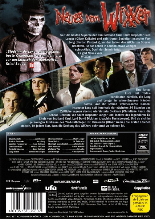 Eine lange Liste mit Todeskandidaten nämlich, die Long und Longer in schweissnassen Händen halten. Auf ihr stehen wohlbekannte Namen: Inspector Long soll innerhalb der nächsten 24 Stunden das Zeitliche segnen ebenso wie Victoria Dickham (Christiane Paul), die schöne Geliebte von Chief Inspector Longer und Tochter des legendären Ex-Chefs von Scotland Yard, Lord David Dickham (Joachim Fuchsberger). Und da sich im geräumigen Kühlraum des Yard-Pathologen Dr. Brinkman (Oliver Welke) die ersten Leichen stapeln, ist jedem klar, dass die Drohung des WiXXers sehr ernst zu nehmen ist.