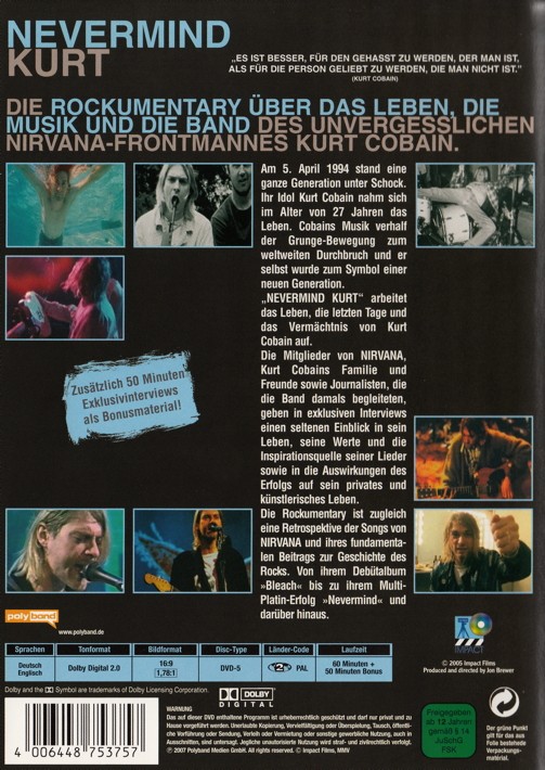 - Titel Nevermind Kurt - All Apologies [DVD]