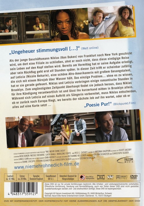 Als der junge Manager Niklas von Frankfurt nach New York geschickt wird, um dort eine Filiale zu schliessen, ahnt er noch nicht, dass diese eintägige Reise sein Leben auf den Kopf stellen wird. Nachdem er das Geschäftliche erledigt hat, trifft er auf Leticia, eine schöne Afro-Amerikanerin mit grossem Gesangstalent, die sich mit einem Bürojob über Wasser hält. Das einzige Problem: ohne es zu wissen, hat er sie gerade gefeuert. Niklas und Leticia verbringen einige romantische Stunden in Brooklyn. Zum ungünstigsten Zeitpunkt überhaupt findet sie jedoch heraus, dass Niklas für ihre Kündigung verantwortlich ist und lässt ihn kurzerhand mitten in Brooklyn allein. Wenige Stunden später taucht Niklas mit einem blauen Auge und all seiner Habseligkeiten beraubt bei Leticias Vaters auf. Im Gespräch mit ihm realisiert er, wie sehr er sich verliebt hat. Während sich Leticia auf einen Auftritt als Sängerin vorbereitet, muss Niklas entscheiden, ob er zurück nach Europa fliegt, wo bereits der nächste Job auf ihn wartet, oder ob er alles auf eine Karte setzt...