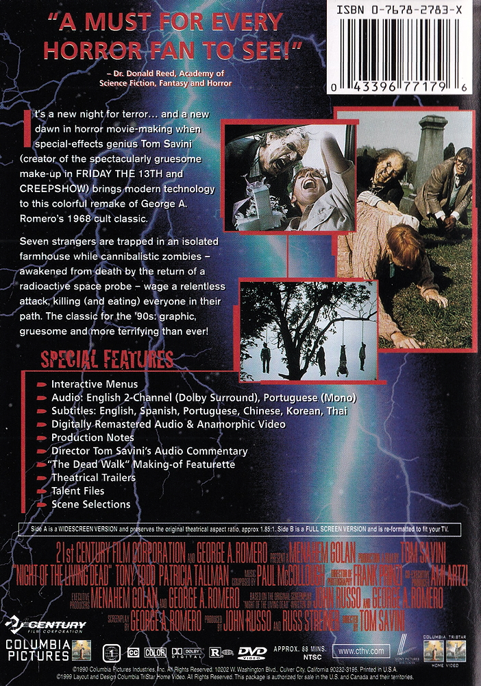 It's a new night for terror - and a new dawn in horror movie-making when special-effects genius Tom Savini (creator of the spectacularly gruesome make-up in Friday the 13th and Creepshow) brings modern technology to this colorful remake of George A. Romero's 1968 cult classic.