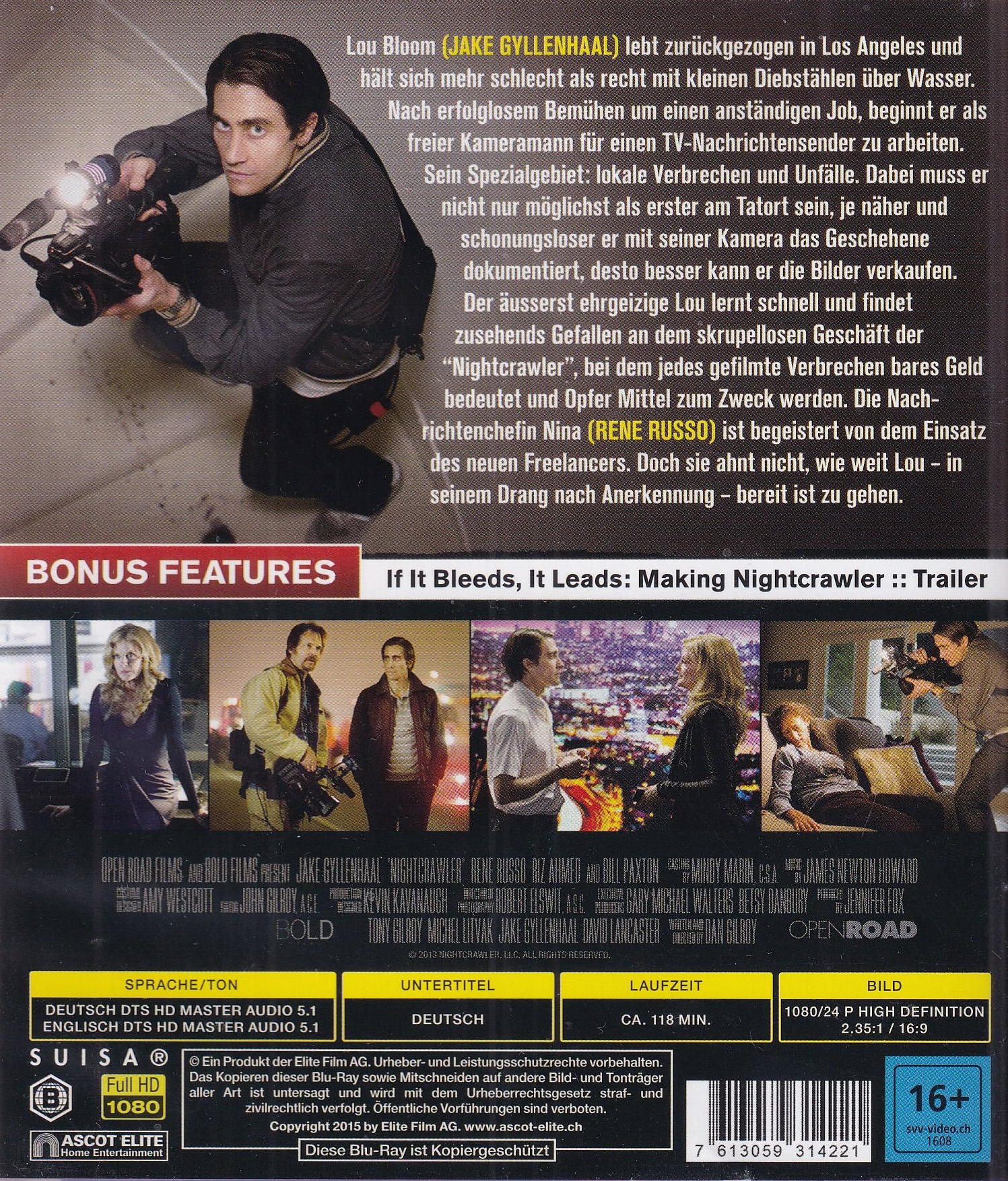 Lou Bloom lebt zurückgezogen in Los Angeles und hält sich mehr schlecht als recht mit kleinen Diebstählen über Wasser. Nach erfolglosem Bemühen um einen anständigen Job, beginnt er als freier Kameramann für einen TV-Nachrichtensender zu arbeiten. Sein Spezialgebiet: lokale Verbrechen und Unfälle. Dabei muss er nicht nur möglichst als erster am Tatort sein, sondern auch näher und schonungsloser als alle anderen das Geschehen mit der Kamera dokumentieren, um seine Bilder zum besten Preis zu verkaufen. Der äusserst ehrgeizige Lou lernt schnell und findet zusehends Gefallen an dem skrupellosen Geschäft der Nightcrawler, bei dem jedes gefilmte Verbrechen bares Geld bedeutet und Opfer Mittel zum Zweck werden. Die Nachrichtenchefin Nina ist begeistert von dem Einsatz des neuen Freelancers. Doch sie ahnt nicht, wie weit Lou in seinem Drang nach Anerkennung bereit ist, zu gehen.