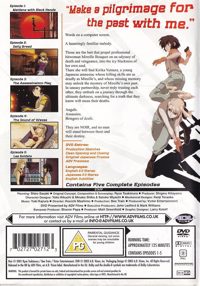 There she will find Kirika Yumura, a young Japanese amnesiac whose killing skills are as deadly as Mireille's, and whose missing memory may unlock the mystery of Mireille's own past.