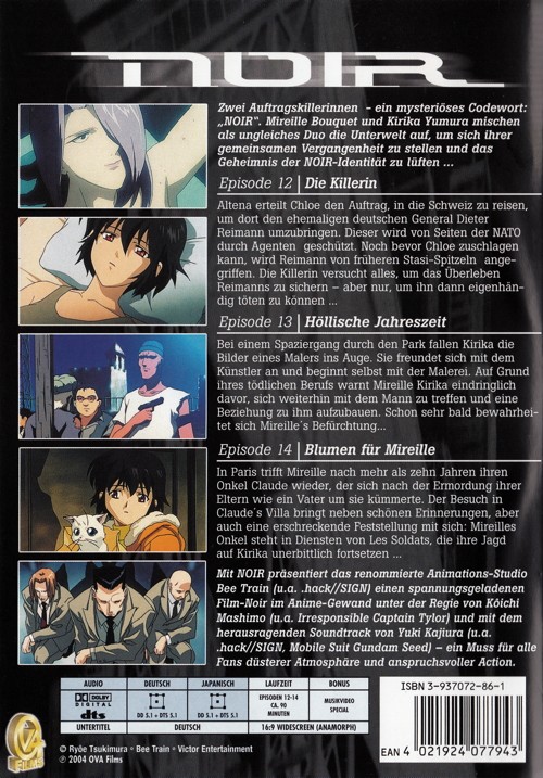 Mireille Bouquet ist eine professionelle Auftragskillerin aus Paris. Eines Tages erhält sie eine mysteriöse E-Mail von der japanischen Schülerin Kirika. Sie fordert Mireille auf, mit ihr eine Pilgerreise in die Vergangenheit zu unternehmen. Mireille glaubt erst an einen Scherz, doch dann ertönt eine Melodie, die in ihr eine bruchstückhafte Kindheitserinnerung weckt.