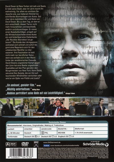 David Owen ist New Yorker mit Leib und Seele. Er liebt seine Stadt, aber ihr Lärm macht ihn wahnsinnig. Vor allem so unnützen Geräusche wie, aus heiterem Himmel losschrillende Alarmanlagen von Autos. Solcher Lärm malträtiert Ohr und Geist von David Owen. Bis zu dem Tag, an dem er sich entschließt, diesen Terror nicht mehr hinzunehmen und beschließt endlich zurückzuschlagen. Er nimmt einen Baseballschläger, prügelt auf die Windschutzscheibe eines Autos ein und hinterlässt eine Visitenkarte: „Der Rectifier ist geboren!“ Die Kunde des Lärmgegners verbreitet sich schnell und sofort beginnt eine Reporterin sich für den unbekannten Rectifier zu interessieren. Ihre Faszination ist bald nicht mehr nur beruflicher natur, denn sie verliebt sich in den Mann hinter der zerstörersichen Fassade. David Owens ungestümer Kampf gegen den Lärm hat eine Bestie ungeahnten Ausmaßes auf den Plan gerufen: den Bürgermeister von New York. Kann David, wie einst Don Quijote, die vor ihm auftauchenden Windmühlen vernichten oder wird er ein Opfer von Politik und Justiz?