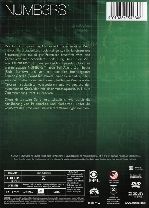Wir benutzen jeden Tag Mathematik ... aber in einer Welt, die von Todesstatistiken, hochintelligenten Serientätern und Prozentquoten rückfälliger Straftäter bestimmt wird, sind Zahlen von ganz besonderer Bedeutung. Dies ist die Welt von NUMB3RS. Rob Morrow spielt Don Eppes, einen FBI-Agenten, der seinen mathematisch hochbegabten Bruder Charlie (David Krumholtz) engagiert, um dem FBI bei einer Reihe von schwierigen Fällen in Los Angeles zu helfen. Auf diese Weise werden die kompliziertesten Fälle von zwei sehr gegensätzlichen Perspektiven angepackt. Inspiriert von echten Fällen, veranschaulicht diese dynamische Serie, wie durch die Annäherung von Polizeiarbeit und Mathematik selbst die komplexesten Probleme unerwartete Wendungen nehmen.
