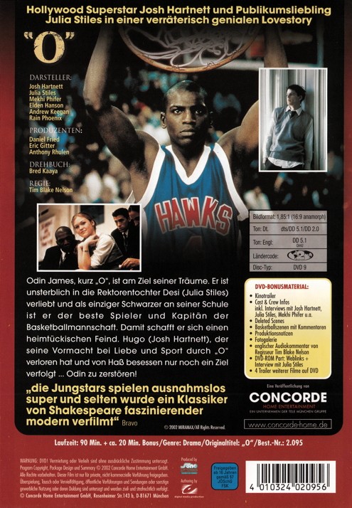 Moderner und mutiger wurde William Shakespeares Othello wohl noch nie verfilmt. Was oberflächlich, wie eine Teenie-Highschool-Romanze anmutet, ist doch der Stoff, der seit Jahrhunderten nichts an Aktualität verloren hat. Trotz schwarzer Hautfarbe ist Sportass Odin der beliebteste Schüler seiner Highschool und in Rektorentochter Desi verliebt. Nur Hugo, dem Sohn von Couch Goulding, seinem väterlichen Mentor, ist Odin ein Dorn im Auge. Mit teils unfreiwilliger Hilfe einiger anderer Schüler entwickelt Hugo einen perfiden Plan, der ganz allein darauf abzielt, Odin zu zerstören. Und während Hugo im Hintergrund die Fäden zieht, entladen sich mit erschreckender Konsequenz die aufgestauten Emotionen, Ängste und Lügen, bis es zu spät ist - für Opfer und Täter...