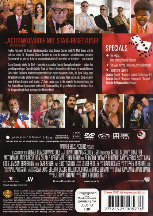 Frecher. Riskanter. Der bisher atemberaubendste Coup. George Clooney, Brad Pitt, Matt Damon und die anderen treten für Regisseur Steven Soderbergh auch im neuesten, sekundengenau geplanten Gaunerstreich auf, weil sie drei Asse aus dem Ärmel ziehen: Sie haben Stil, sie sind clever - und ultracool.