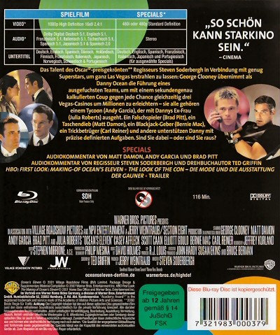 Kaum aus dem Gefängnis entlassen, plant der elegante Gauner Danny Ocean (George Clooney) in Las Vegas den Coup seines Lebens: Er will die drei größten Casions der Stadt gleichzeitig ausnehmen. Dazu engagiert er die elf besten und coolsten Spezialisten der Branche, wie den Falschspieler Rusty (Brad Pitt) und den Taschendieb Linus (Matt Damon). Ihr raffinierter Plan scheint perfekt. Doch Danny hat mit dem skrupellosen Besitzer der Casions, Terry Benedict (Andy Garcia), noch eine ganz private Rechnung offen. Denn Terry ist der neue Freund von Dannys Ex-Frau Tess (Julia Roberts). Um sie zurückzuerobern, riskiert Danny alles...