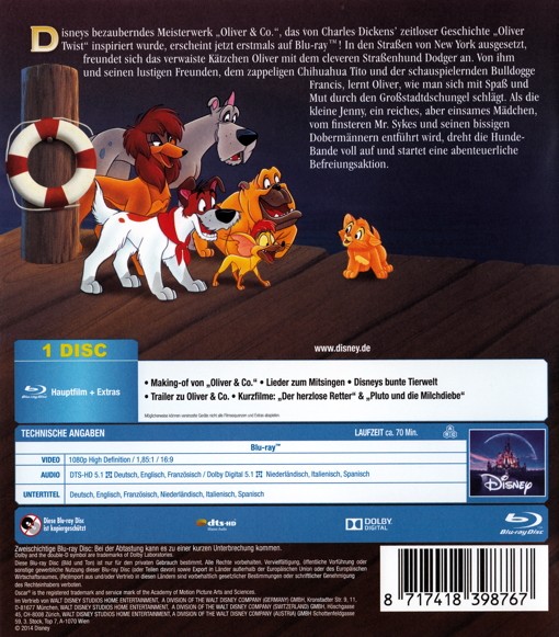 In den Strassen New Yorks ausgesetzt, freundet sich das verwaiste Kätzchen Oliver mit dem pfiffigen Hund Dodger an. Von ihm und seinen ausgeflippten Freunden Tito, dem zappeligen Chihuahua, und Francis, der schauspielernden Bulldogge, lernt Oliver, wie man sich mit Humor und Cleverness durch den Grossstadtdschungel schlägt. Als die kleine Jenny, ein reiches, aber einsames Mädchen, vom finsteren Mr. Sykes und seinen bissigen Dobermännern entführt wird, dreht die Hunde-Bande voll auf und startet eine abenteuerliche Befreiungsaktion voll atemberaubender Spannung.