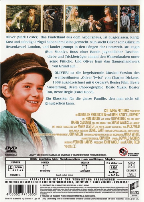 Oliver, das Findelkind aus dem Arbeitshaus, ist ausgerissen. Karge Kost und ständige Prügel haben ihm Beine gemacht. Nun sucht Oliver sein Glück im Hexenkessel London, und landet prompt in den Fängen der Unterwelt. Mr. Fagin, Boss einer Bande jugendlicher Taschendiebe und Trickbetrüger, nimmt den Waisenknaben unter seine Fittiche. Und Oliver lernt das Gaunerhandwerk von Grund auf...
