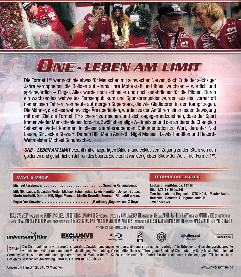 One - Leben am Limit" erzählt von den goldenen Jahren des Sports, als er gefährlicher denn je wurde und die Fahrer wie Rockstars waren, deren Charisma und Talent die Show am Laufen hielt, auch wenn viele von ihnen am Ende den mit dem Leben bezahlten. Er erzählt von den Fahrern, die sich immer am Limit bewegten und gegen die bestehenden Regeln auflehnten, um den Sport sicherer zu machen. Er erzählt von der grössten Show der Welt - der Formel 1.