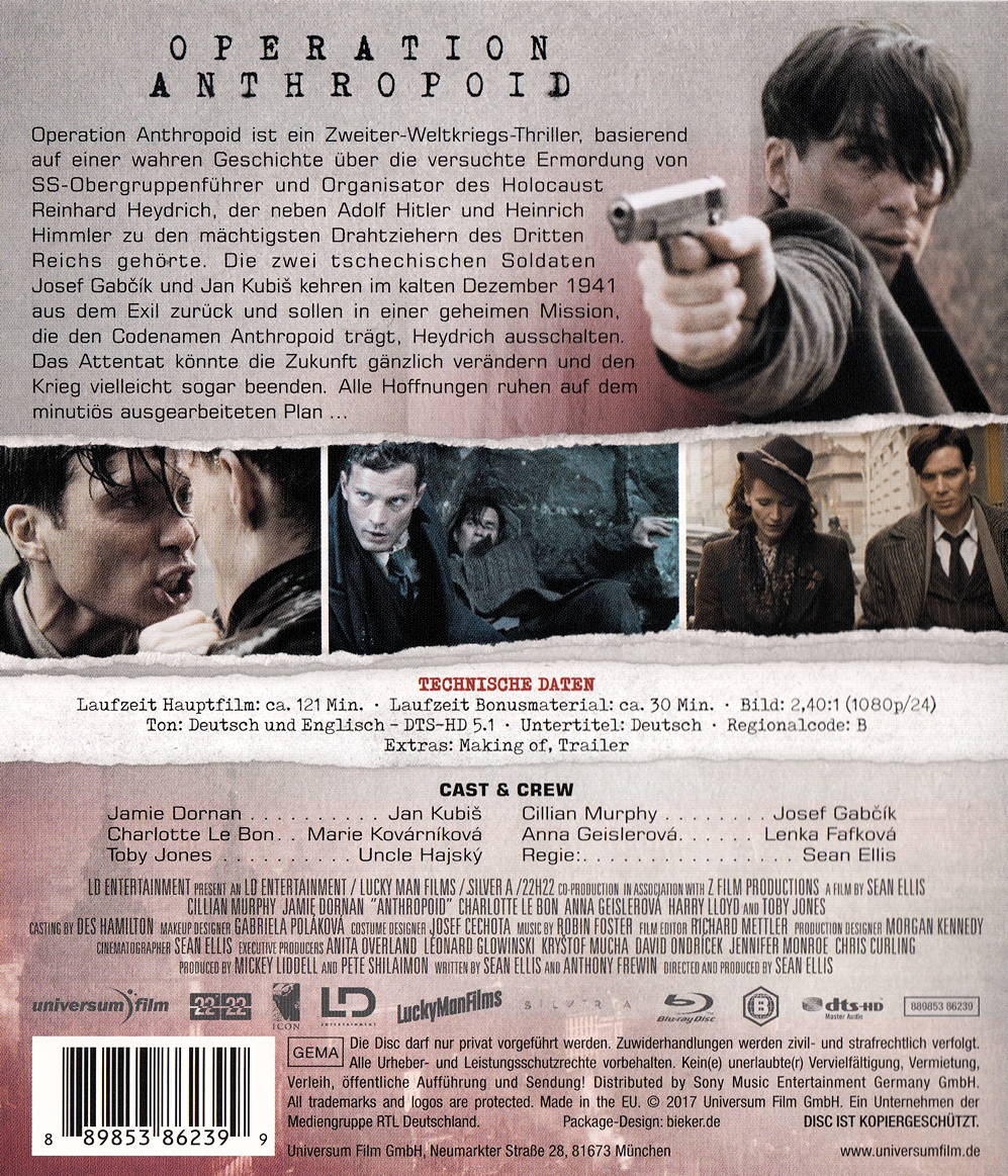 Operation Anthropoid ist ein Zweiter-Weltkriegs-Thriller, basierend auf einer wahren Geschichte über die versuchte Ermordung von SS-Obergruppenführer und Organisator des Holocaust Reinhard Heydrich, der neben Adolf Hitler und Heinrich Himmler zu den mächtigsten Drahtziehern des Dritten Reichs gehörte. Die zwei tschechischen Soldaten Josef Gabcík und Jan Kubiš kehren im kalten Dezember 1941 aus dem Exil zurück und sollen in einer geheimen Mission, die den Codenamen Anthropoid trägt, Heydrich ausschalten. Das Attentat auf Heydrich könnte die Zukunft gänzlich verändern und den Krieg vielleicht sogar beenden. Alle Hoffnungen ruhen auf dem minutiös ausgearbeiteten Plan...