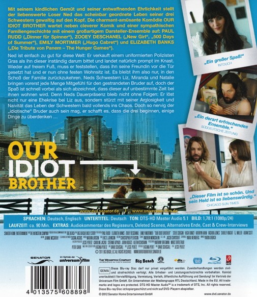 Ned ist einfach zu gut für diese Welt: Er verkauft einem uniformierten Polizisten Gras als ihn dieser inständig darum bittet und landet natürlich prompt im Knast. Wieder auf freiem Fuss, muss er feststellen, dass ihn seine Freundin vor die Tür gesetzt hat und er nun ohne festen Wohnsitz ist. Es bleibt ihm also nur, in den Schoss der Familie zurückzukehren. Neds Schwestern Liz, Miranda und Natalie bringen vorerst jede Menge Mitgefühl für den gestrandeten Bruder auf, doch der Spass ist schnell vorbei als sich abzeichnet, dass dieser auf unbestimmte Zeit bei ihnen wohnen wird. Denn Neds Dauerpräsenz bleib nicht ohne Folgen: Er löst nicht nur eine Ehekrise bei Liz aus, sondern stürzt mit seiner Arglosigkeit und Naivität das Leben der Schwestern bald vollends ins Chaos. Doch so nervig der "idiotische" Bruder auch sein mag, er schafft es, dass die drei beginnen, einige Dinge zu überdenken...