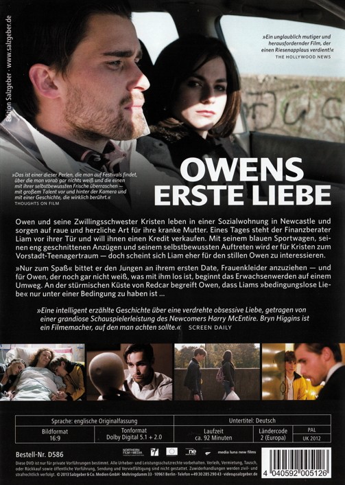 Owen und seine Zwillingsschwester Kristen leben in einer Sozialwohnung in Newcastle und sorgen auf raue und herzliche Art für ihre kranke Mutter. Eines Tages steht der Finanzberater Liam vor ihrer Tür und will ihnen einen Kredit verkaufen. Mit seinem blauen Sportwagen, seinen eng geschnittenen Anzügen und seinem selbstbewussten Auftreten wird er für Kristen zum Vorstadt-Teenagertraum – doch scheint sich Liam eher für den stillen Owen zu interessieren. „Nur zum Spaß“ bittet er den Jungen an ihrem ersten Date, Frauenkleider anzuziehen – und für Owen, der noch gar nicht weiß, was mit ihm los ist, beginnt das Erwachsenwerden auf einem Umweg. An der stürmischen Küste von Redcar begreift Owen, dass Liams „bedingungslose Liebe“ nur unter einer Bedingung zu haben ist …