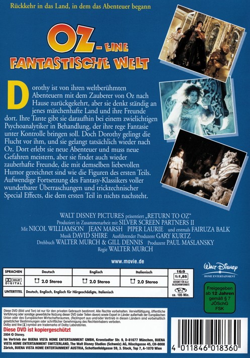 Dorothy (Fairuza Balk) ist von ihren weltberühmten Abenteuern mit dem Zauberer von Oz nach Hause zurückgekehrt, aber sie denkt ständig an jenes märchenhafte Land und ihre Freunde dort. Ihre Tante gibt sie daraufhin bei einem zwielichtigen Psychoanalytiker in Behandlung, der ihre rege Fantasie unter Kontrolle bringen soll. Doch Dorothy gelingt die Flucht vor ihm, und sie gelangt tatsächlich wieder nach Oz. Dort erlebt sie neue Abenteuer und muss neue Gefahren meistern, aber sie findet auch wieder zauberhafte Freunde, die mit demselben liebevollen Humor gezeichnet sind wie die Figuren des ersten Teils. 'Oz - Eine fantastische Welt', die aufwendige Fortsetzung des Fantasy-Klassikers 'Das zauberhafte Land - Der Zauberer von Oz' (1939), voller wunderbarer Überraschungen und tricktechnischer Special-Effects, die dem ersten Teil in nichts nachsteht.