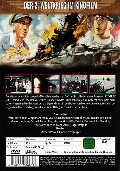 Dezember 1939. Das deutsche Panzerschiff "Admiral Graf Spee" nimmt Kurs auf sein Jagdgebiet im Südatlantik. Es ist schneller und schwerer bewaffnet als die gewaltigen Schlachtschiffe des Gegners. Unerbittlich kämpft Kapitän Hans Langsdorff. Wie ein trügerisches Irrlicht taucht das schnelle Schiff auf und verschwindet plötzlich spurlos, um dann wieder wie ein Wolf anzugreifen. Doch dann wird der Jäger zum Gejagten, und der Kampf wird im neutralen Hafen von Montevideo ausgetragen.