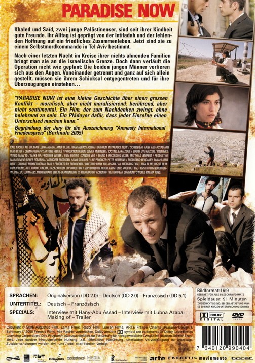Die Palästinenser Khaled und Said sind seit ihrer Kindheit gute Freunde. Jetzt wurden sie ausgewählt, sich als Selbstmordattentäter in Tel Aviv in die Luft zu sprengen. Die voraussichtlich letzte Nacht ihres Lebens dürfen die beiden noch einmal im Kreise ihrer Familien verbringen. Da ihr Vorhaben aber selbstverständlich streng geheim bleiben muss, bleibt ihnen ein wirklicher Abschied von ihren Lieben verwehrt. Schon am nächsten Morgen werden sie an die Grenze gebracht. Die Bomben sind unsichtbar an ihren Körpern befestigt. Doch dann verläuft die Operation nicht wie geplant. Die beiden Freunde verlieren sich aus den Augen. Getrennt und ganz auf sich allein gestellt müssen sie ihr Schicksal meistern und für ihre Überzeugungen einstehen...
