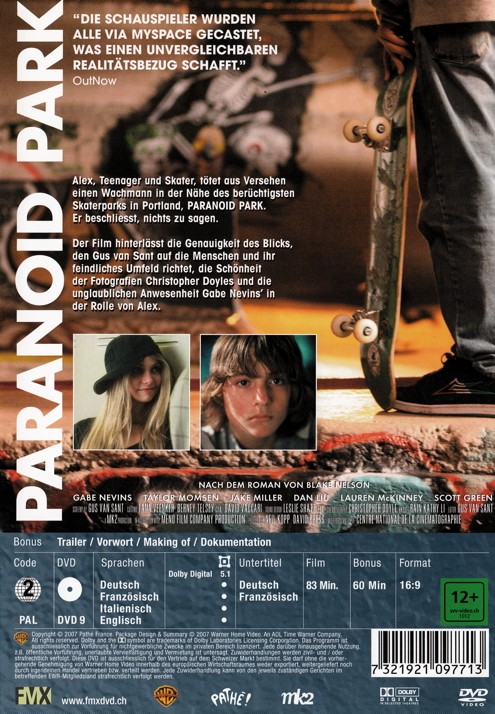 Alex, Teenager und Skater, tötet aus Versehen einen Polizisten in der Nähe des berüchtigsten Skaterpark Portland, PARANOID PARK. Er beschliesst, nichts zu sagen.