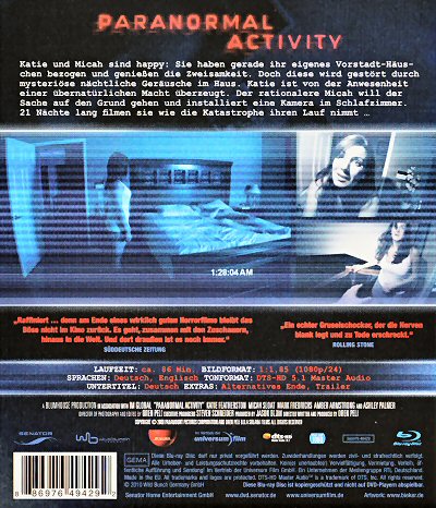 Katie und Micah sind happy: Sie haben gerade ihr eigenes Vorstadt-Häuschen bezogen und geniessen die Zweisamkeit. Doch diese wird gestört durch mysteriöse nächtliche Geräusche im Haus. Katie ist von der Anwesenheit einer übernatürlichen Macht überzeugt. Der rationalere Micah will der Sache auf den Grund gehen und installiert eine Kamera im Schlafzimmer. 21 Nächte lang filmen sie wie die Katastrophe ihren Lauf nimmt...