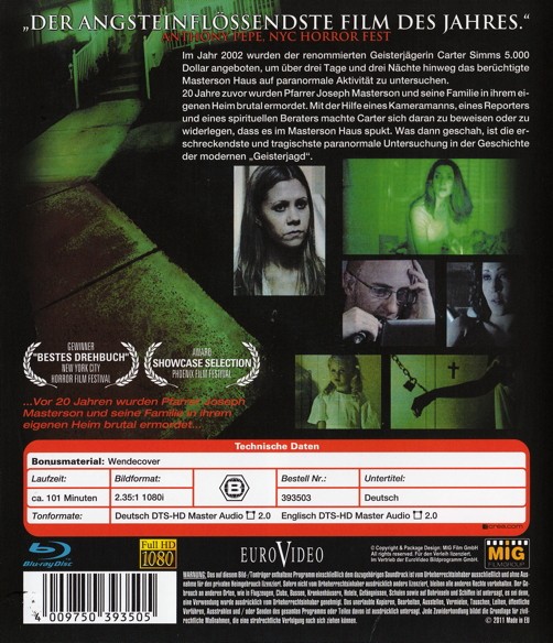 Im Jahr 2002 wurden der renommierten Geisterjägerin Carter Simms 5.000 Dollar angeboten, um über drei Tage und drei Nächte hinweg das berüchtigte Materson Haus auf paranormale Aktivität zu untersuchen. 20 Jahre zuvor wurden Pfarrer Joseph Materson und seine Familie in ihrem eigenen Heim brutal ermordet. Mit der Hilfe eines Kameramannes, eines Reporters und eines spirituellen Beraters machte Carter sich daran zu beweisen oder zu widerlegen, dass es im Masterson Haus spukt. Was dann geschah, ist die erschreckendste und tragischste paranormale Untersuchung in der Geschichte der modernen "Geisterjagd".