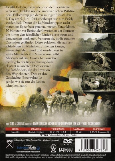 Es gibt Helden, die werden von der Geschichte vergessen. Helden wie die amerikanischen Pathfinders. Fallschirmjäger, deren mutiger Einsatz den D-Day am 5. Juni 1944 überhaupt erst zum Erfolg werden liess. Damit die Luftlandetruppen nicht mitten ins Speerfeuer geraten, müssen Elitesoldaten 30 Minuten vor Beginn der Invasion in der Normandie hinter den feindlichen Linien abspringen und Landezonen markieren. Versagen sie, ist die gesamte Operation gefährdet. Diese Soldaten, die aus verschiedenen militärischen Einheiten kamen, waren einander fremd und wurden erst in letzter Minute für ihre Mission auserwählt. Alles wies auf ein Desaster hin, wurden die Regeln der Kriegsführung doch eklatant missachtet. Doch es waren die Pathfinders, die der Invasion den Weg ebneten. Dies ist ihre Geschichte. Eine wahre Legende, wie sie nur das Leben schreiben kann!