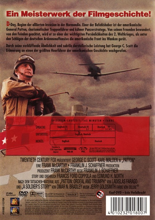 D-Day, Beginn der alliierten Invasion in der Normandie. Einer der Befehlshaber ist der amerikanische General Patton, charismatischer Truppenführer und kühner Panzerstratege. Von seinen Freunden bewundert, von den Feinden geachtet, wird er zu einer der wichtigsten Persönlichkeiten des 2. Weltkrieges, als unter den Schlägen der deutschen Ardennenoffensive die amerikanische Front ins Wanken gerät.