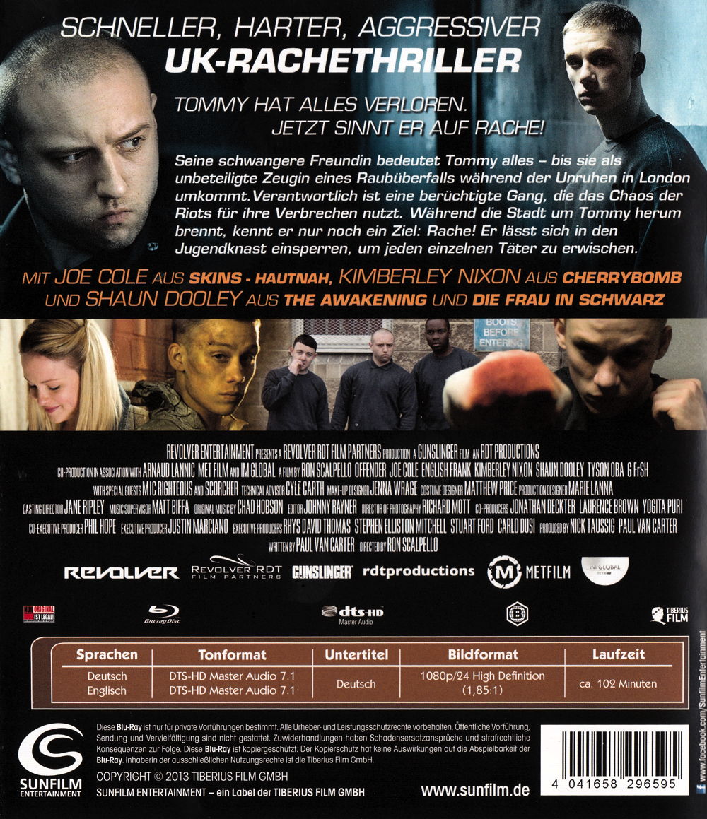 Seine schwangere Freundin bedeutet Tommy alles, bis sie als unbeteiligte Zeugin eines Raubüberfalls während der Unruhen in London schwer verletzt wird. Verantwortlich ist eine berüchtigte Gang, die das Chaos der Riots für ihre Verbrechen nutzt. Während die Stadt um Tommy herum brennt, kennt er nur noch ein Ziel: Rache! Er lässt sich in den Jugendknast einsperren, um alle Täter zu erwischen...