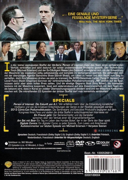 - Titel Person of Interest - Staffel 3 [DVD]