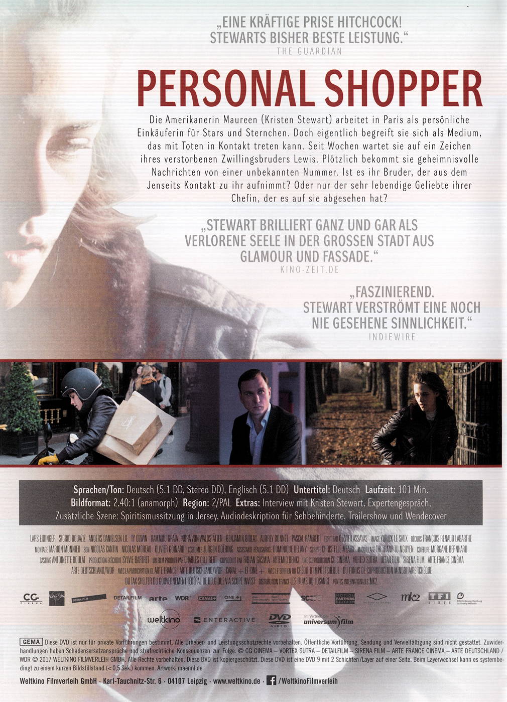 Die Amerikanerin Maureen, Mitte zwanzig, arbeitet in Paris als persönliche Einkäuferin für Stars und Sternchen. Doch eigentlich begreift sie sich als Medium, das mit Toten in Kontakt treten kann. Seit Wochen wartet sie auf ein Zeichen ihres verstorbenen Zwillingsbruders Lewis. Plötzlich bekommt sie geheimnisvolle Nachrichten von einer unbekannten Nummer. Ist es ihr Bruder, der aus dem Jenseits Kontakt zu ihr aufnimmt? Oder nur der sehr lebendige Geliebte ihrer Chefin, der es auf sie abgesehen hat?