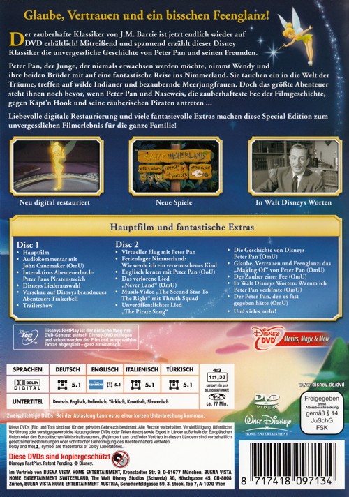 Endlich wird die Geschichte von Peter Pan, dem Jungen, der nie erwachsen werden will, in diesem brandneuen Meisterwerk von Walt Disney weitererzählt.