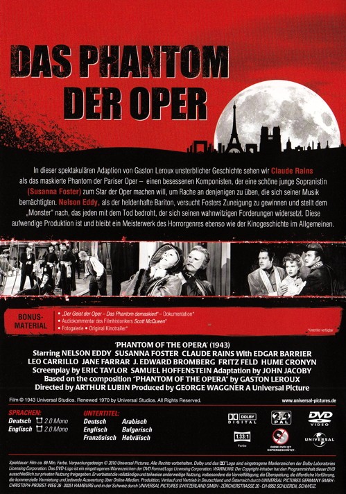 - Schauspieler Nelson Eddy, Claude Rains, Susanna Foster, Edgar Barrier, Leo Carrillo