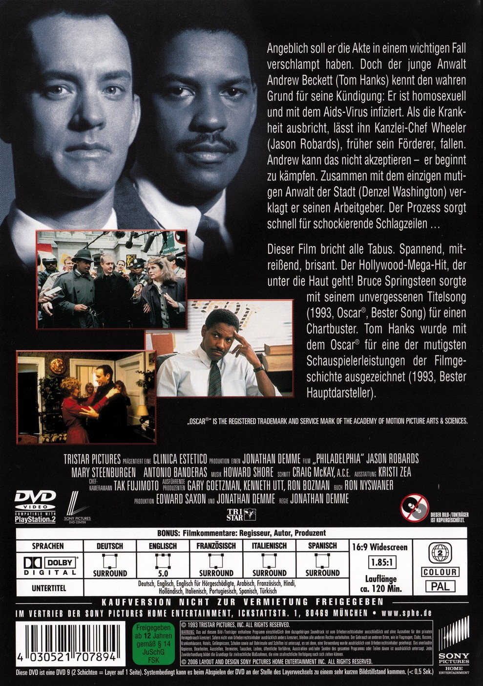 Angeblich soll er die Akte in einem wichtigen Fall verschlampt haben. Doch der junge Anwalt Andrew Beckett (Tom Hanks) kennt den wahren Grund für seine Kündigung: Er ist homosexuell und mit dem Aids-Virus infiziert. Als die Krankheit ausbricht, lässt ihn Kanzleichef Wheeler (Jason Robards), früher sein Förderer, fallen. Andrew kann das nicht akzeptieren - er beginnt zu kämpfen. Zusammen mit dem einzigen mutigen Anwalt der Stadt (Denzel Washington) verklagt er seinen Arbeitgeber. Der Prozess sorgt schnell für schockierende Schlagzeilen.