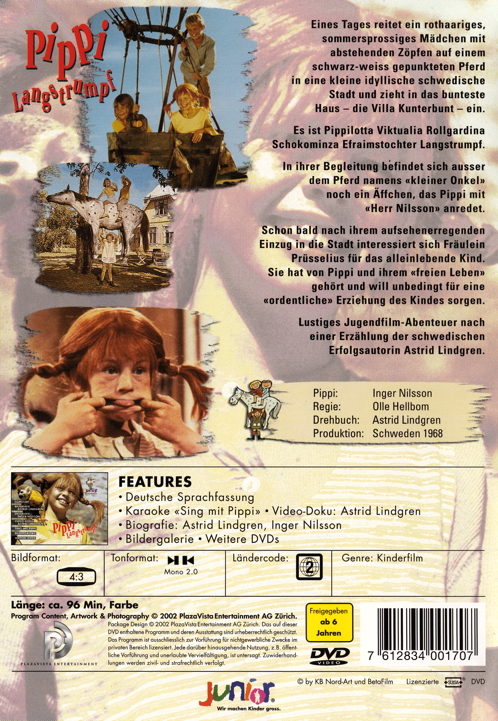 Neben dem Elternhaus von Tommi und Annika steht die lustig aussehende "Villa Kunterbunt" seit Jahren leer. Eines vormittags sehen die beiden Kinder, wie ein Mädchen mit grossen Schuhen, roten Zöpfen und einem Affen auf der Schulter in die Stadt kommt und auf die Villa Kunterbunt zusteuert. Das vorlaute, freche Mädchen kann auf Eltern, Erziehung und Ordnung im Leben gut verzichten. Und ganz besonders auf die Schule. Als sie aber hört, dass ihre Freunde Tommi und Annika Weihnachtsferien bekommen und sie nicht, ist sie empört...