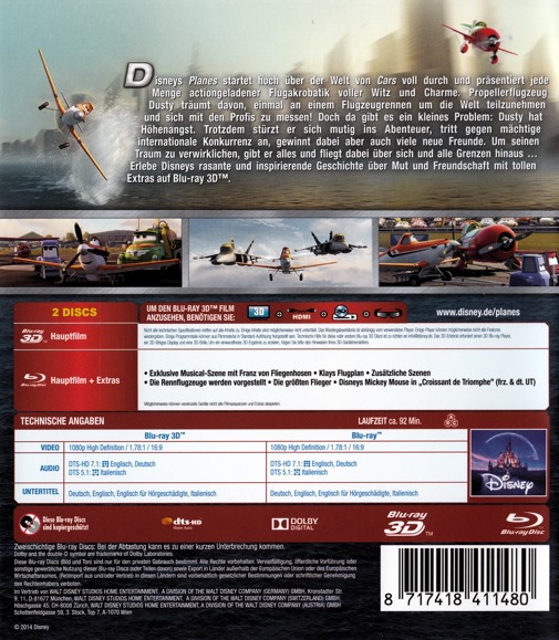 Einmal im Leben beim legendärsten Flugzeugrennen der Welt teilnehmen, dem "Wings around the Globe" - das ist der grösste Traum von Sprühflugzeug Dusty Crophopper (Dane Cook). Doch obwohl er pfeilschnell über die Felder fliegt, ist er für einen Wettkampf dieser Grössenordnung ungeeignet, denn der kleine Flieger leidet unter Höhenangst. Aber Dusty gibt nicht auf: Er wendet sich an den erfahrenen, aber mittlerweile gealterten Marineflieger Skipper (Stacy Keach), der ihm bei seinem Vorhaben unter die Flügel greift und mit dem ambitionierten Dusty trainiert. Zuerst wird das seltsame Lehrer-Schüler-Gespann noch belächelt, vor allem die beiden flinken Jets Echo (Val Kilmer) und Bravo (Anthony Edwards) schauen von oben auf Dusty herab. Doch dieser geht unbeirrbar seinen Weg und ergattert schliesslich einen Startplatz beim grossen Wettkampf. Die spannende Route des Rennens führt vorbei an den nepalesischen Gabelstaplermönchen und sogar in einen bayerischen Bierkeller. Sein grösster Gegner bleibt jedoch immer noch Dusty selbst, denn nur er kann seine Höhenangst besiegen und so vielleicht das Rennen gewinnen...