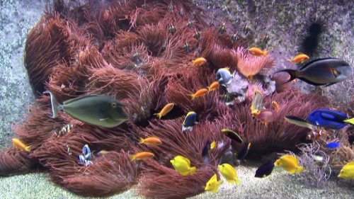 Erleben Sie ein loderndes Kaminfeuer in gestochen scharfen Bildern, so real, dass Sie es kaum von einem echten Kamin unterscheiden können. Lauschen Sie dabei wahlweise dem Knistern des Feuers oder klassischer Klaviermusik. Aquarium