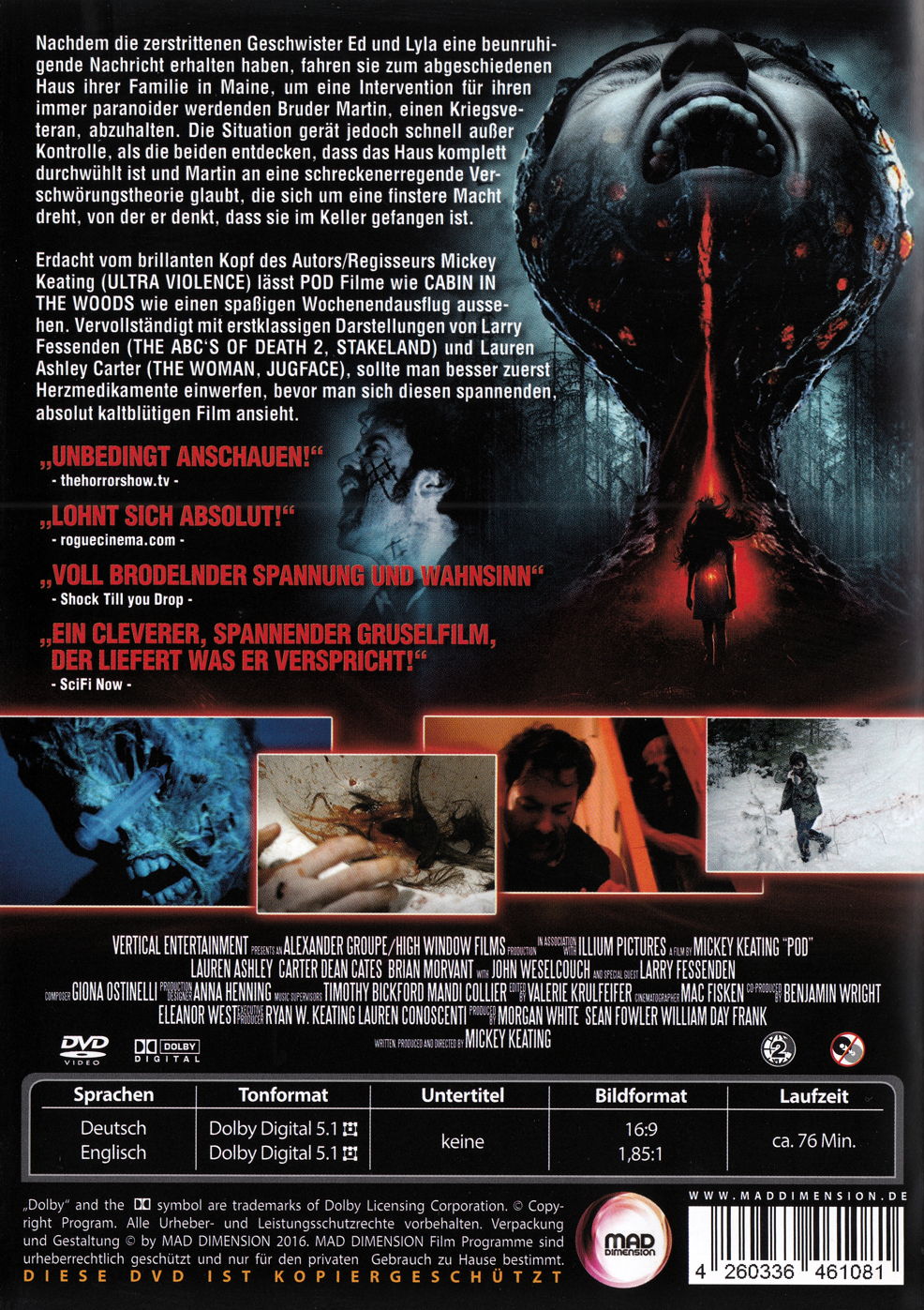 - Schauspieler Lauren Ashley Carter, Larry Fessenden, Brian Morvant, Dean Cates, John Weselcouch, Forrest McClain