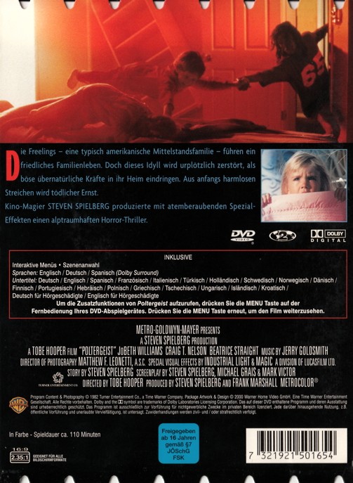 "Sie sind hier", zunächst harmlos... doch nicht lange. Ein Sturm bricht los, ein Baum greift an und die kleine Carol Anne Freeling verschwindet in der Welt der Geister. Während ihre Familie sich mit unermesslichem Horror konfrontiert sieht, taucht noch etwas anderes auf: ein neuer Massstab für Gruselfilme made in Hollywood. An der Spitze des exzellenten Scream Teams dieses Gruselklassikers stehen die Produzenten Steven Spielberg und Frank Marshall sowie Regisseur Tobe Hooper.