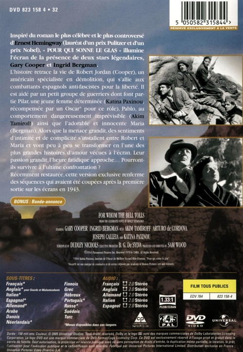 - Schauspieler Gary Cooper, Ingrid Bergman, Akim Tamiroff, Vladimir Sokoloff