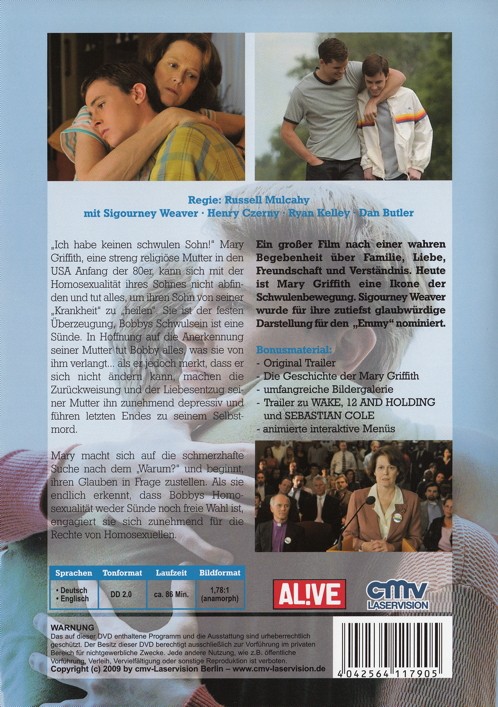 Ein grosser Film nach einer wahren Begebenheit über Familie, Liebe, Freundschaft und Verständnis. Heute ist Mary Griffith eine Ikone der Schwulenbewegung. Sigourney Weaver spielt ihre Rolle zutiefst glaubwürdig und war dafür für einen "Emmy" nominiert.