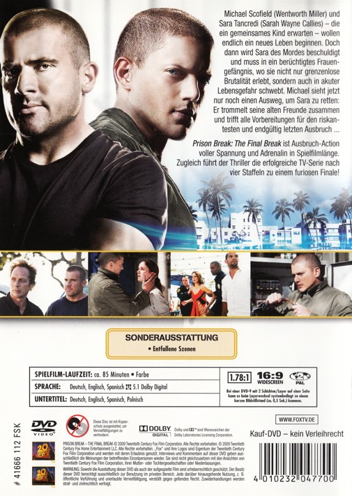 Prison Break - The Final Break ist Ausbruch-Action voller Spannung und Adrenalin in Spielfilmlänge. Zugleich führt der Thriller die erfolgreiche TV-Serie nach vier Staffeln zu einem furiosen Finale.