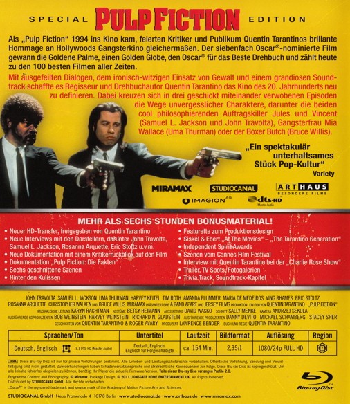 - Schauspieler Samuel L. Jackson, Bruce Willis, Ving Rhames, Christopher Walken, John Travolta, Harvey Keitel, Uma Thurman, Tim Roth, Rosanna Arquette, Amanda Plummer