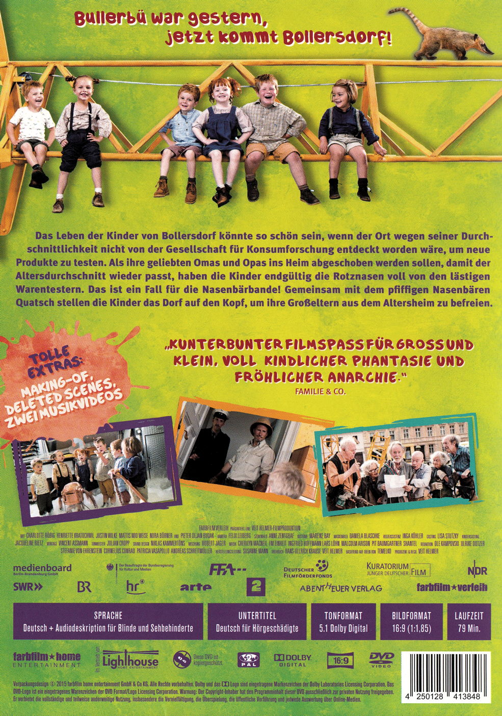 Das Leben der Kinder von Bollersdorf könnte so schön sein, wenn der Ort wegen seiner Durchschnittlichkeit nicht von der Gesellschaft für Konsumforschung entdeckt worden wäre. Hier sollen neue Produkte getestet werden. Was den Bollersdorfern gefällt, lässt sich überall gut verkaufen, wissen die Marktforscher. Doch während die Eltern des Ortes begeistert mitmachen, haben ihre Kinder schnell die Rotznasen voll von den lästigen Warentestern. Erst recht, als sie ihre geliebten Omas und Opas ins Heim abschieben wollen, damit der Altersdurchschnitt wieder passt. Das ist ein Fall für die Nasenbärenbande! Gemeinsam mit dem pfiffigen Nasenbären Quatsch hecken die Kinder einen cleveren Plan aus: Mit abenteuerlichen Erfindungen und verrückten Weltrekorden wollen sie Bollersdorfs Einzigartigkeit beweisen, damit die Konsumforscher endlich wieder verschwinden...