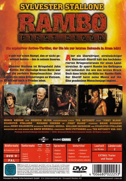 Sylvester Stallone spielt John Rambo, einen ehemaligen Einzelkämpfer einer Spezialeinheit, der, zurückgekehrt ins Zivilleben, den letzten Freund besuchen will, den er aus früheren Vietnam-Einheit noch am Leben glaubt. Weil dem Sheriff der Kleinstadt weder Rambos Aussehen noch seine Art als Anhalter zu reisen gefällt, nimmt er ihn fest, um ihn "zu einem ordentlichen Mann zu machen." Er und seine Gehilfen beleidigen und prügeln Rambo im Schutz ihrer Sheriff-Uniformen. Als sie ihm auch noch die Haare abschneiden wollen, reisst Rambo sich los und kämpft sich einen Weg in die Berge frei. Bei der anschliessenden Menschenjagd geht es dem Sheriff ums Prinzip und John Rambo zeigt ihnen, wozu ein Mann fähig ist, der um sein Leben kämpfen muss und es dank seiner Ausbildung mit einer ganzen Militäreinheit aufnehmen kann.