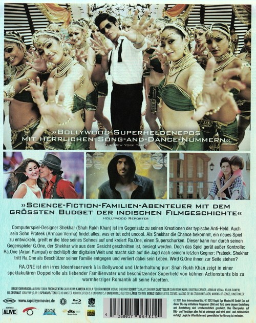 Ra.One ist ein irres Ideenfeuerwerk à la Bollywood und Unterhaltung pur: Shah Rukh Khan zeigt in einer spektakulären Doppelrolle als liebender Familienvater und beschützender Superheld von kühnen Actionstunts bis zu warmherziger Romantik all seine Facetten.