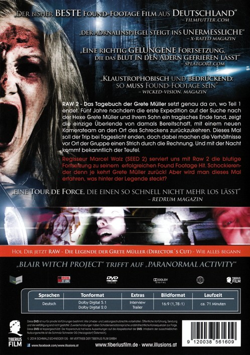 RAW 2 - Das Tagebuch der Grete Müller setzt genau da an, wo Teil 1 endet. Die einzige Überlende wird nun doch noch ein Opfer von Grete Müller. Niemand ist vor ihr sicher – noch hat sie jeden erledigt. Diesem Phänomen will erneut eine Gruppe unerschrockener Jugendlicher auf den Grund gehen. Doch diesmal wird alles noch viel schlimmer. Erst einmal in ihrer Grabesruhe gestört, schlägt sie gnadenlos zu. In RAW 2 werden wir nicht nur Zeuge ihres Verschwindens, sondern jetzt spritzt Blut aus den jungen Leibern auf die Linse ihrer Kamera.