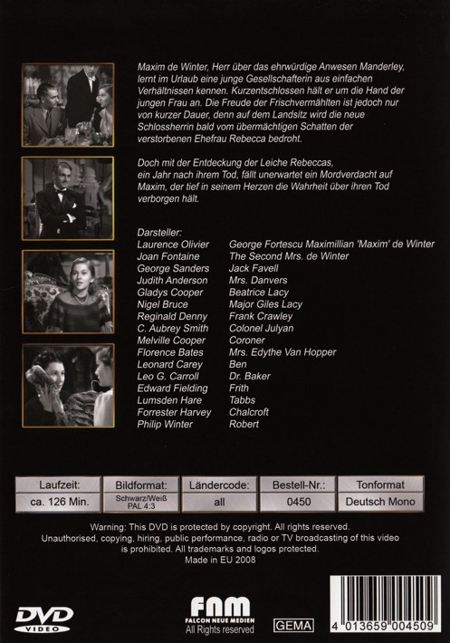 Alfred Hitchcock, Laurence Olivier, Judith Anderson, Reginald Denny, Gino Corrado, Leo G. Carroll, Melville Cooper, George Sanders, Leyland Hodgson, Gladys Cooper...Nigel Bruce, William H. O'Brien, Joan Fontaine, Billy Bevan, Alphonse Martell, Edward Fielding, Lumsden Hare, C. Aubrey Smith, Leonard Carey, Florence Bates, Egon Brecher, Forrester Harvey, Ronald R. Rondell, Philip Winter