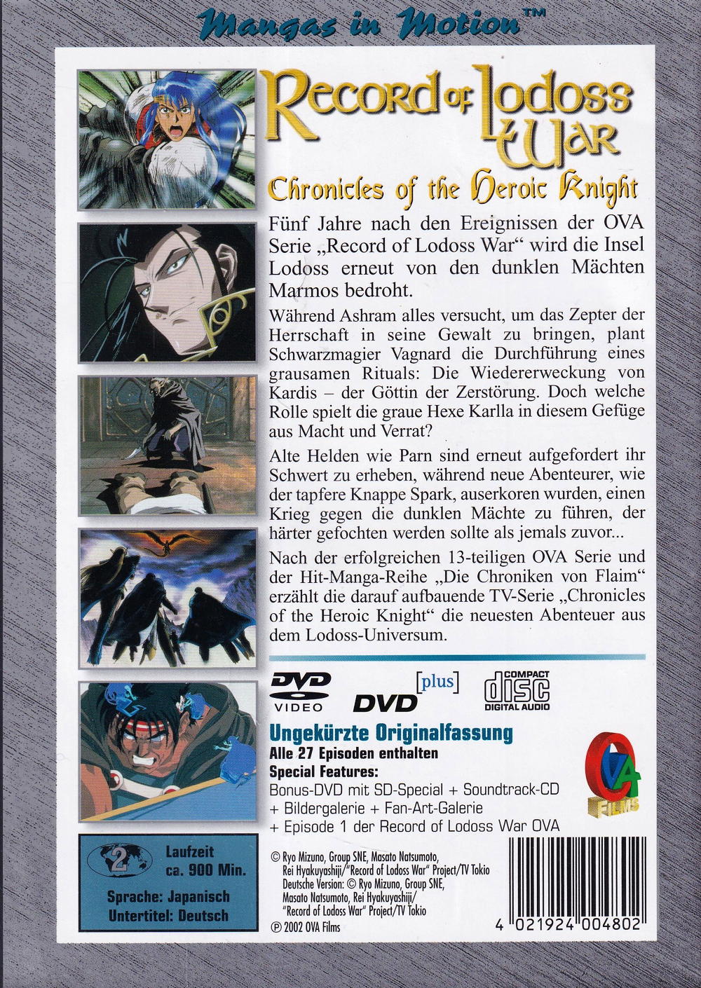 -27 Episoden Fünf Jahre nach den Ereignissen der OVA Serie "Record of Lodoss War" wird die Insel Lodoss erneut von den dunklen Mächten Marmos bedroht.